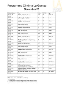 1 category Grange programme novembre 25 Category: Programme Navigation de l’article Previous: Différente Related Posts Programme du mois d’octobre Lire plus